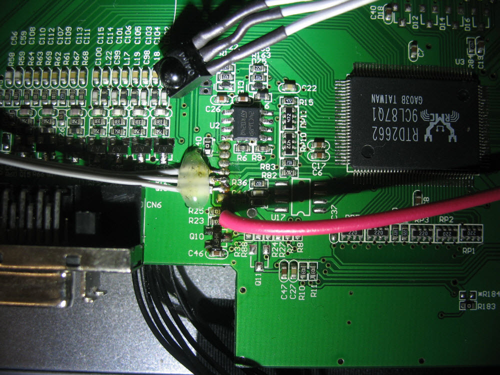 Спасибо за фото, но похоже с моими знаниями в электронике мне оно не помогло бы. Так как у меня немного другая компоновка элементов на плате (оказался какой-то Lilliput 809-SKD). В общем после переписки со службой поддержки (китайская, где покупал - отказалась помочь, мотивируя, что это комерческая тайна, а вот американская прислала ответ через день) получил фото с комментариями куда и что впаять: Вложение 24507 Так как руки у меня не особо к такого рода операциям склонны - поехал на радиорынок, где мне специалист за демократичную цену впаял npn-транзистор (номинал не важен) и провод, а так же выпаял ИК-приёмник с планки и впаял его (через коннектор) на плату: Вложение 24508 В итоге и планку с кнопками можно подключить при надобности, а на постоянное использование оставить только ИК приёмник где-нибудь в укромном, но всегда доступном месте. Может кому будет полезно. |