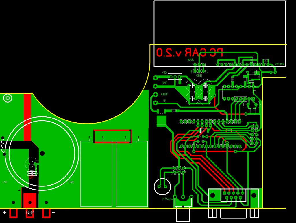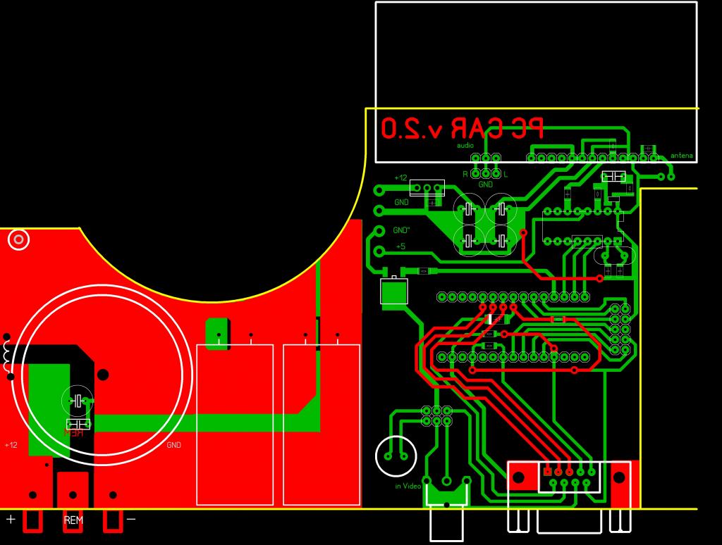 1) Материнская плата Zotac LGA775 GF9300-I-E на которой установлено: Процессор Intel Pentium Dual Core E6700 с вентилятором 80х80х25 4pin Чипсет GeForce с вентилятором 40х40х10 3pin Оперативка – 3 Гб (2 + 1) Жесткий диск - 250 Гб 2,5” SATA (укороченный SATA кабель 25 см) Контроллер LPT+2COM PCI-E Wi-Fi 2) Верхняя плата состоит из фильтра и 2 модулей: Системы фильтрации питания (феррит + конденсаторы 20000х25В) Arduino Nano (рулевые кнопки, регулировка подсветки, радио, вентиляторы, камера заднего вида) Радио (радио модуль от магнитолы, синтезатор и система питания) 3) Блок питания М4-АТХ с вентилятором 30х30х10 2pin 4) Система охлаждения: 2 вентилятора 40х40х10 3pin и одного 30х30х10 2pin Схема управления охлаждением с датчиком температуры Bluetooth 5) Плата разъем задней панели: Мини хаб USB 4-1 Термометр USB (2313+d18b20) Для удобства гайки М3 запрессовал в вентиляторы. Задняя нижняя плата содержит: 4 USB (3 из которых высокоскоростные, и 1 через хаб) 1хСОМ Светодиоды (POWER и HDD) Кнопка RESET Разъемы питания +5 и +12 вольт Разъем контроллера Arduino Nano (Оставшиеся незадействованные контакты) Разъем 3,5мм для наушников (на панель управления) Задняя верхняя плата содержит: +12/АСС/GND Разъем под антенну FM 9 pin (датчик света, рулевые кнопки, + 5 В, GND, камера заднего вида, POWER) S-video В процессе сборки пришлось собрать два программатора AVR и PIC с интерфейсом USB. |