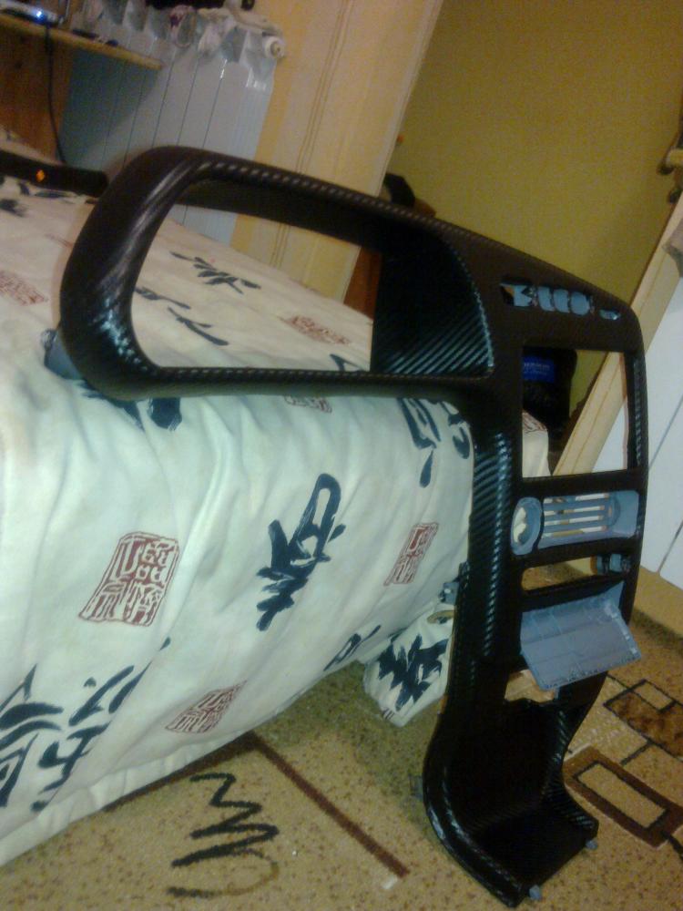 И вот спустя 2 месяца пришла в голову идея обтянуть панель плёнкой под карбон. Хотя я её ,как и шпаклёвку с наждачкой, в руках не держал,и долго думал браться или нет...