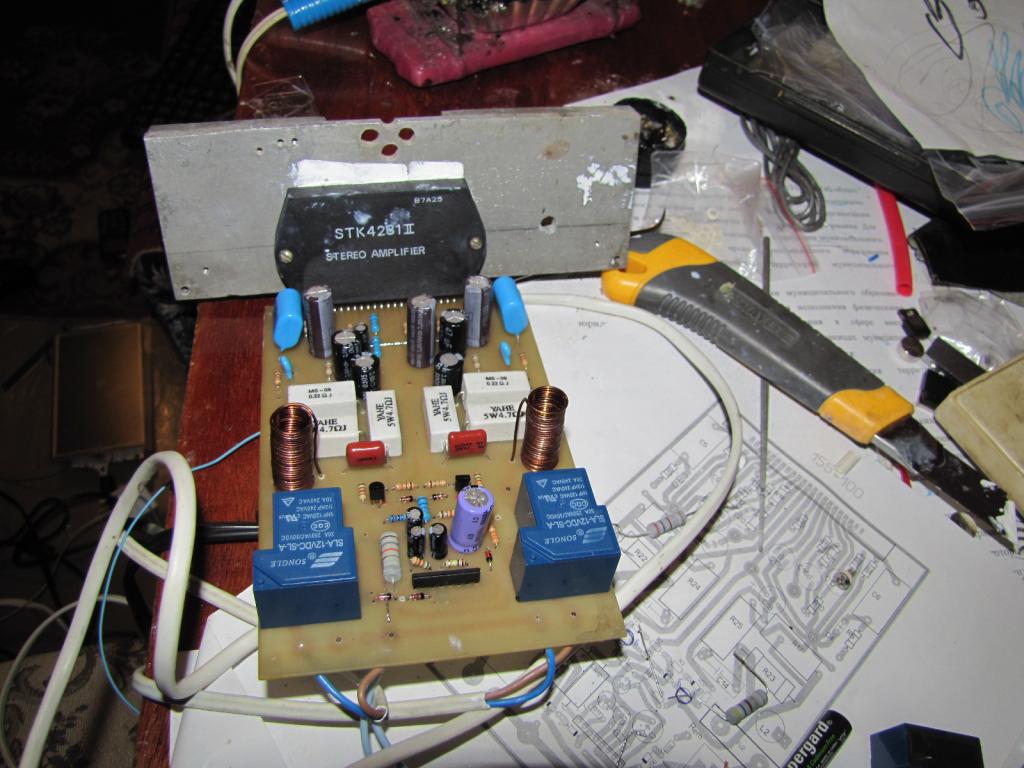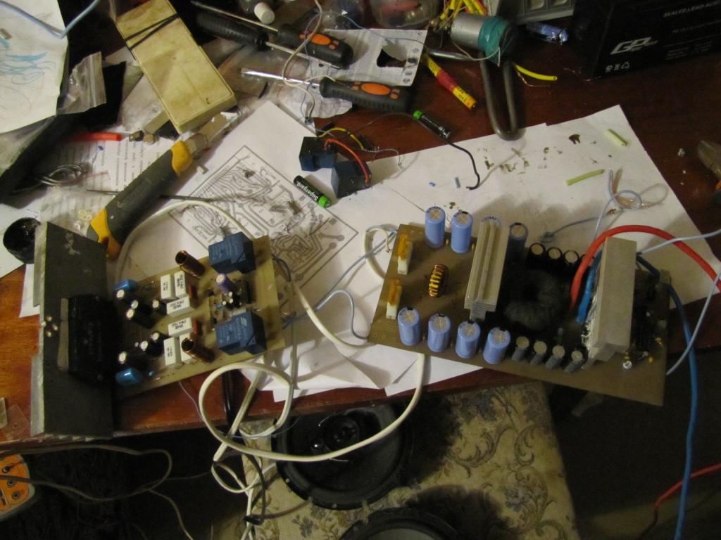 Поразмыслив над разными вариантами, пришел к выводу, что УЗЧ соберу сам. Схемотехнику усилителя перебрал разную: транзисторную (Ланзар, Стонколд) – отказался из-за габаритов и необходимости в проведении настройки каждого усилителя; на микросхемах (TDA, LM, гибрид (STK)). Выбор был сделан в пользу гибрида (STK), а конкретнее STK4231, она представляет собой 2-х канальный усилитель выходной мощностью 100Вт на канал и сопротивлением нагрузки 8Ом. На УЗЧ поставлена защита от постоянного напряжения на выходе – UPC1237; а так же от нагрева STK и БП (ПН). Для питания усилителя был собран преобразователь напряжения мощностью 500Вт с выходным напряжением 51В в плече. Со сборкой, схемой и настройкой БП (ПН) можно ознакомиться по ссылке http://forum.vegalab.ru/showthread.php?t=47320 – СПАСИБО автору и тем, кто принимал участие в разработке. ПН Вложение 33997 Вложение 33998 Вложение 33999 Вложение 34000 Вложение 34001 Вложение 34002 Вложение 34003 Вложение 34004 Схема усилителя звуковой частоты была взята с даташита STK4231, к ней я добавил защиту от постоянного напряжения на выходе http://cxem.net/sound/amps/amp162.php. Вложение 34005 Вложение 34006 Вложение 34007 Пробный запуск усилка и ПК. Результат прослушивания музыки, оказался выше, чем я ожидал. Хотя я, не меломан, но музыку люблю, меня поразила мощность усилителя, про качество звучания ничего говорить не буду, у каждого человека на этот счет свое мнение и вкус, а в автозвуке за качество отвечают многие факторы в совокупности, не только усилитель. Вложение 34008 Да, можете не говорить, и так вижу прекрасно какой, бардак я развел в квартире, за что и сказал СПАСИБО своим близким за долгое терпение моих увлечений. Вложение 34009 Вложение 34010 |