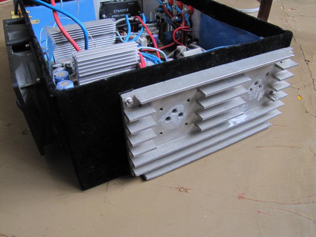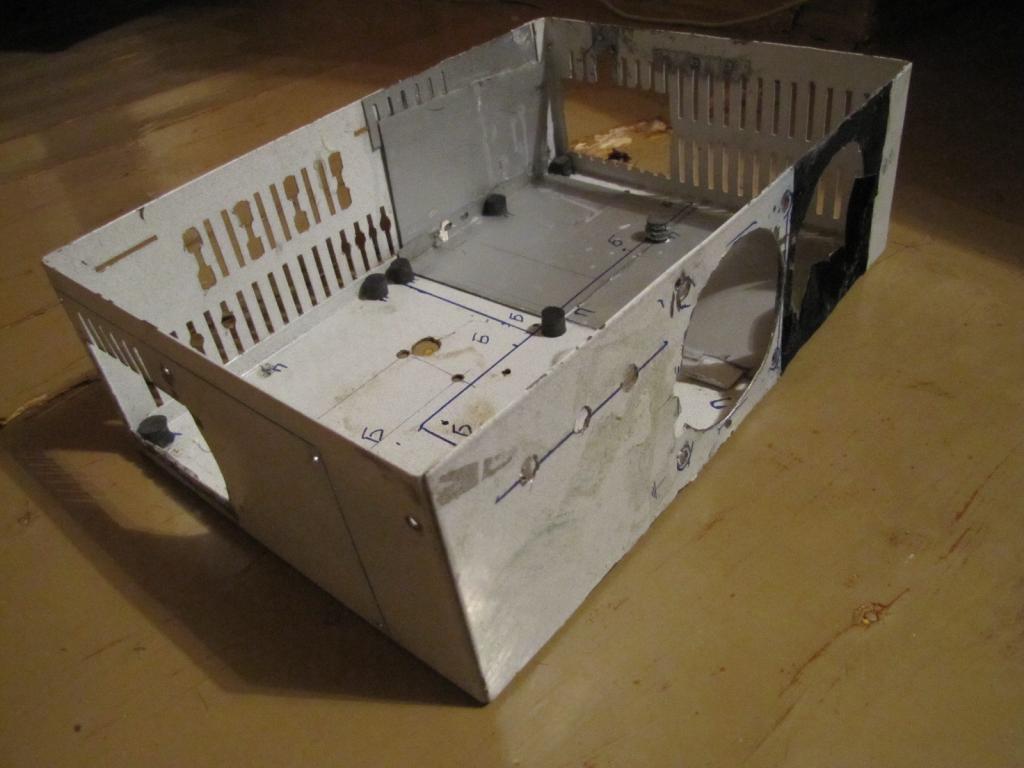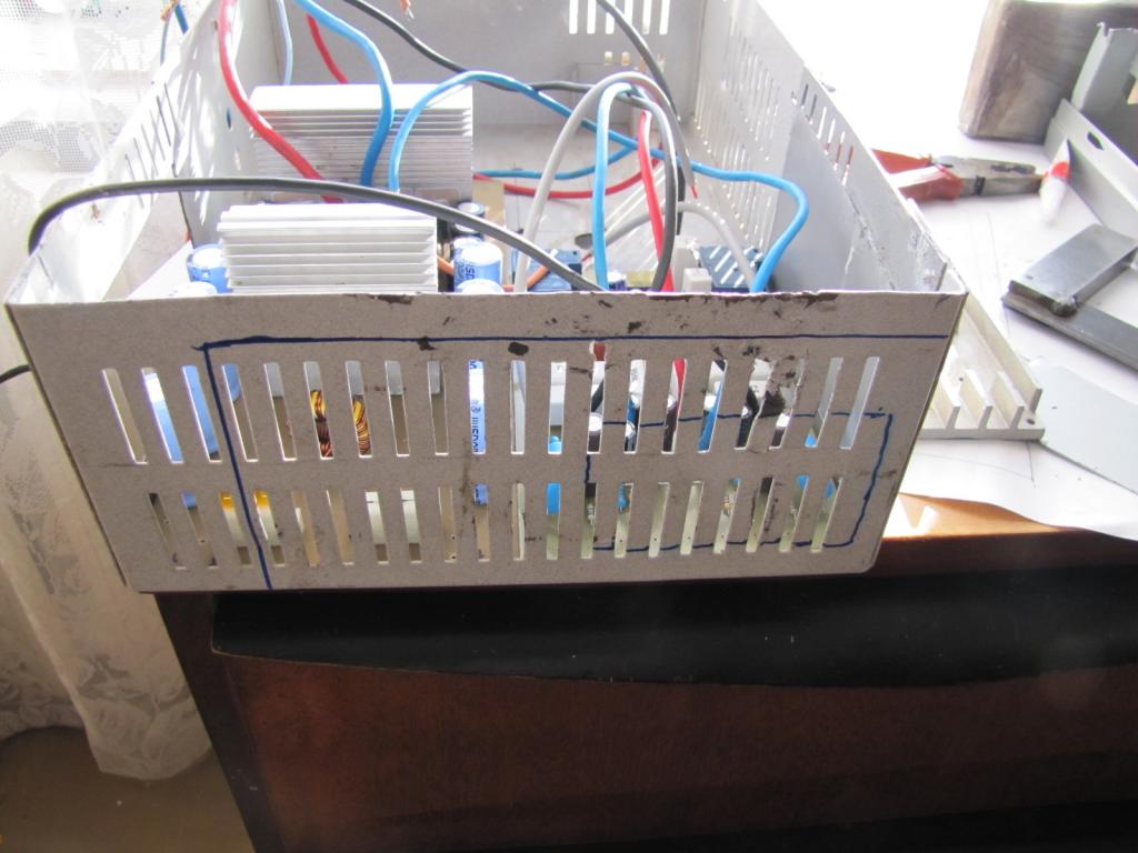 Усилитель собран, теперь дело осталось за корпусом. Нашел в гараже опустошённый алюминиевый корпус. Стал примерять платы в него, в итоге имеем – ощутимую нехватку длины, сантиметров этак 5, а других вариантов коробов больше не было пришлось прибегнуть к радикальному решению. Как говорится «ломать не строить», все же поломал и построил: удлинил с помощью проставок, распилив его по ширине, отмерив нужную длину, вставил проставки, приклеив суперклеем распиленные половинки, далее упрочнил стыки холодной сваркой. Вот и получился «честный» распил, корпус нужной нам длины.