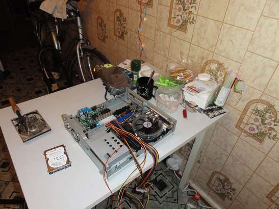 Для Мини материнки корпус как раз подошел. Материнская плата была выбрана…………. Диск на 250 Гигов для ноутбука. В дальнейшем хотелось поставить SD диск, но в процессе эксплуатации стандартный диск сбоев не давал, и зимой работал нормально и вибрация ему не мешала. Правда ставился он на несколько амортизационных прокладок, но они не особо то и работали, как кажется.