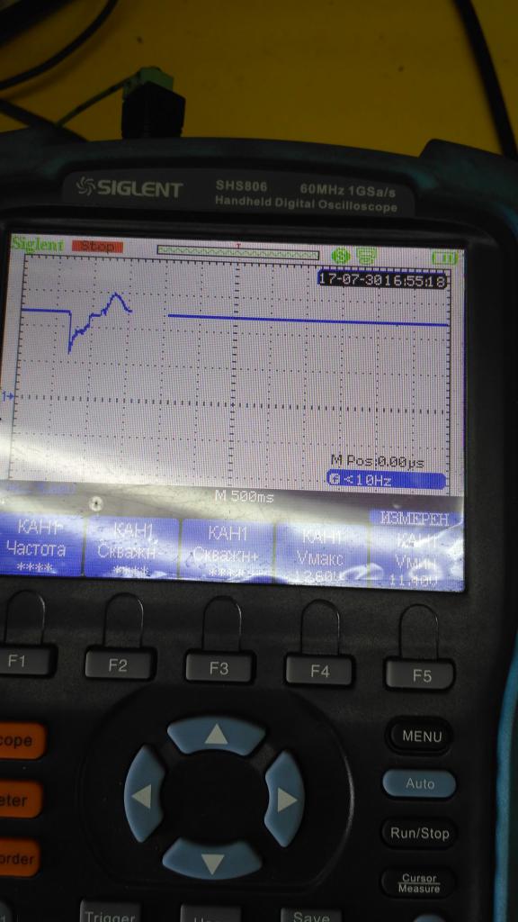 Увидев падение напряжения на батарее планшета на 0,2с до 2,2В Вложение 47879Вложение 47878 полез смотреть входное ( 12В) видео осциллограмма напряжения при старте машины Вложение 47880Вложение 47881Вложение 47882 А там то же самое. Kiw3312S, который используется в БП5 перестаёт работать при 7 вольтах. Просадка до 6, хоть и мгновенная. (Напрямую на АКБ до 7 примерно и есть, но мне провода тянуть от батареи лень.) Потому и нестабильность при работе без батареи. Причём добавление диода или дросселя по входу просадку не убрало, она точно такая же. Поэтому пока оставил батарею и думаю, как правильно и надёжно её убрать. ( как вариант поставить ионистр) |