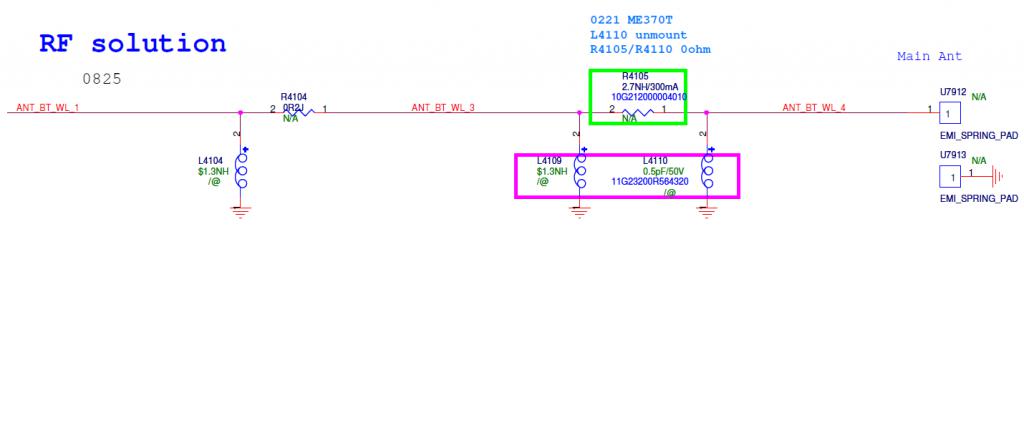 До этого эксперементировал - подпаивал 20 см провода к антенне (параллельно), сигнал становился лучше. Если поднести роутер на расстояние метр, то сигнал появляется, слабый, 1 точка. Если поднести роутер на 15-20 см, то сигнал становится максимальный. Кто знает, что и как можно проверить? :sm467: вот даташит схена на нексус 7 2012 Вложение 45877 Если я правильно понял, то антенна wi-fi и блютуз совмещенная ( стр 36 даташита) Вложение 45878 Почему на схеме L4109 и L4110 есть, а на плате нету? На фото справа черненькая штучка, идущая от контактов антенны - это резистор 0 Ом (R4105)? Вложение 45879 |