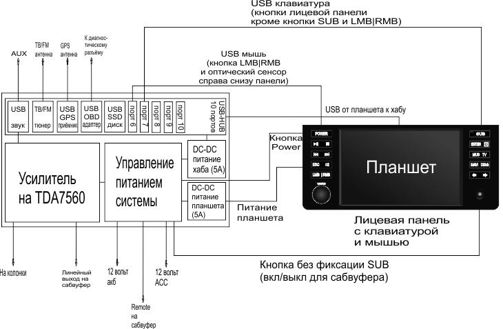 Вложение 46928 USB порты 8-10 остаются свободные, пару из них выведу на панель для подключения флешек и прочего в итоге получится не то чтобы CarPC, просто очень умное мультимедиа головное устройство |
