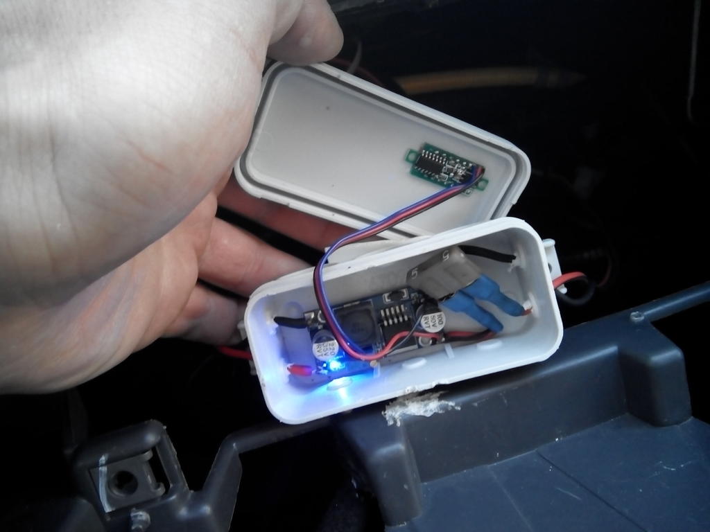 Задача - полноценная замена штатной магнитолы + расширение функционала с минимальными вмешательствами в проводку автомобиля. Необходимый функционал: 1. Рабочее ФМ-радио; 2. Возможность подключения флешки; 3. Навигация; 4. Возможность прослушивания интернет-радио. Фото ДО: Вложение 49737 Вложение 49738 В связи с тем, что бюджет был строго ограничен, то про внедрение Нексуса или чего-то подобного речи не шло. Был куплен максимально недорогой планшет с хорошим экраном, 3G и нормальным объемом оперативки, это Digma 7100r. Вложение 49739 Далее был изготовлен простенький блок питания на основе LM2596, из планшета был удален аккумулятор. Т.к. планшет в этом плане простой как три рубля, то проблем с контроллером батареи не возникло, планшет воспринял питание как родное, заряд не падает и т.д. Вложение 49740 Вложение 49742 Для снятия звука я выпаял разъем 3.5 и на его место напрямую впаял экранированный кусок USB кабеля, там как раз 4 провода, что мне и было нужно, сейчас объясню для чего. Вложение 49741 В процессе изготовления возникла проблема усыпления и пробуждения планшета, т.к. в нем нет датчика Холла. Для её решения мной была применена схема размыкания 4-го контакта на звуковом разъеме, с помощью этого контакта планшет определяет когда в него вставляют гарнитуру. Соответственно появление или извлечение гарнитуры это событие, к которому можно привязать действие по пробуждению или усыплению. Реле размыкающее 4-й контакт, а также аудио выходы я разместил в такой же распред. коробке, что и блок питания. Вложение 49743 Общий вид внутри торпедо Вложение 49744 USB кабель вывел в бардачок, а сам планшет установил прямо в родную панель без каких-либо доработок, изнутри прижал пластиной. Вложение 49745 Вложение 49746 Радио реализовал очень просто, подал питание на штатную антенну, а в её сигнальный разъем воткнул проводок, соединающий разъем с одним из каналов звука, который отвечает за прием радиосигнала, все заработало. Теперь что касается программной части. Там все очень просто, автоматизация реализована с помощью приложения automateit, в качестве лаунчера использован car launcher AG. Все остальные приложения по желанию легко устанавливаются и удаляются. Вот собственно и все. Все поставленные задачи выполнены, цели достигнуты. Если кому что-то интересно или я упустил что-нибудь - спрашивайте! |