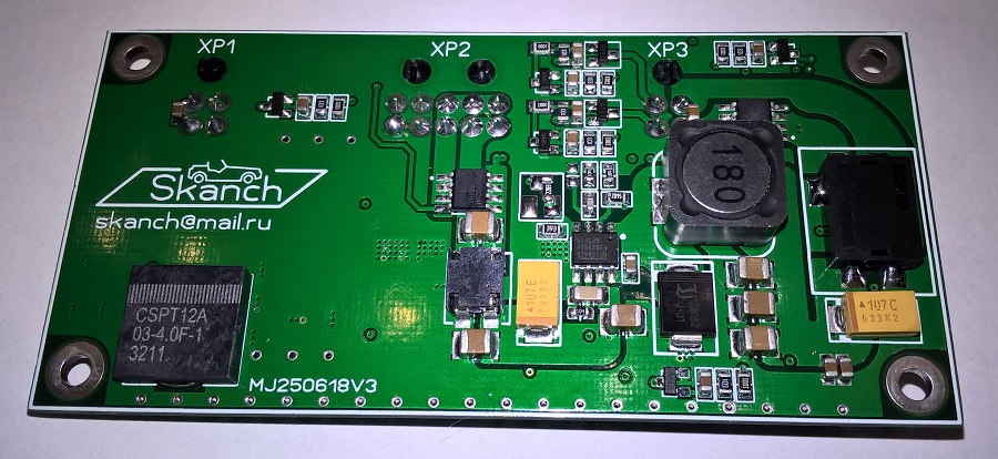 Блок выполнен на четырехслойной плате по авторской топологии, что позволило снизить нагрев компонентов при максимальной нагрузке (использование дополнительного радиатора с обратной стороны платы при использовании канала +/-5в-10А на максимальной нагрузке обязательно). Разрабатывался модуль для использования в составе установочного комплекта высококачественной акустической системы в автомобиле для одновременного питания системника от Apple, DSP-блока, планшета или монитора, HUB-а и управлением выходами Remout нескольких отдельных усилителей. На плате присутствует модуль отслеживания напряжения на АКБ с фиксированным порогом отключения ниже 11.5 В. Есть два выхода для возможного использования режимов OTG и управлением по датчику Холла. Также возможен вариант с отключением основного канала и "дежурным" питанием контроллера +/- 5В и током нагрузки до 80 мА (собственное потребление блока в целом в таком режиме составляет 9 мА). Вложение 50109 Вложение 50111 Вложение 50110 |