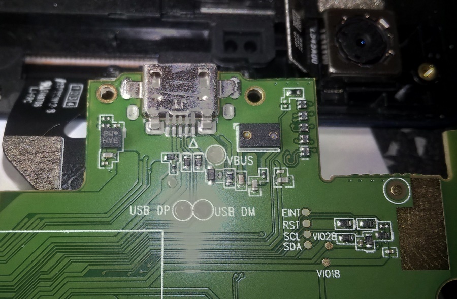 Подключение питания на Lenovo TB3-850M во многом похоже на подключение Samsung Galaxy Tab S 10.5 SM-T805. Батарея удаляется, контроллер остаётся (только потому что имеет специфический разъём на гибком ленточном шлейфе и припаивать к шлейфу провода не совсем удобно). К контакту "плюс" на контроллере припаивается провод, который подключается к положительному выходу внешнего DC-DC преобразователя. К контакту "минус" на контроллере ничего не припаиваем. "Минус" от DC-DC преобразователя припаиваем к общей "массе" на материнской плате планшета ( корпус microUSB разъёма). Напряжение питания планшета 4,5В.