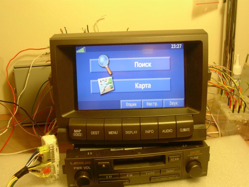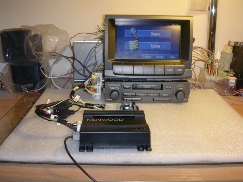 Теперь стоит навигация Garmin-Kenwwod KNA-G420 (карты России, Украины, Европы, бесплатное обновление.) Управление со штатного тача и кнопок а так же активация MUTE и вывод голосовых подсказок на штатную аудиосистему. |