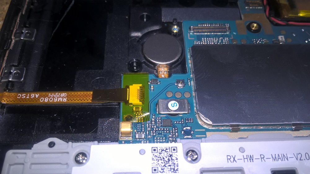 Это с "отстёгнутым" экраном. Вложение 51669 Вложение 51672 ------------------------------------------------------------ Батарея несъёмная-приклеена на тонкий двухсторонний скотч. "Срезал" её пластиковой лопаткой. Вложение 51676 ------------------------------------------------------------ Разъём micro USB. Вложение 51683 Вложение 51675 ------------------------------------------------------------ Для подключения внешнего питания я использовал свою схему, описанную в этой теме. Линия "плюс" подключается прямо на разъём на мат-плате, с использованием для этого контроллера батареи. Вложение 51677 Вложение 51678 ------------------------------------------------------------ "Минус" паяется на общую "массу" на мат-плате. Напряжение питания 4,4V. Вложение 51679 ------------------------------------------------------------ Управление планшетом будет по "нажатию" на кнопку питания. На материнке есть три "пятака"- выводы от кнопок управления. Управление однопроводное с замыканием на "массу". Вложение 51673 ------------------------------------------------------------ Вывод от кнопки питания. Вложение 51680 ------------------------------------------------------------ Вложение 51681 Ниже результат теста в AnTuTu BenchMark. Вложение 51682 ------------------------------------------------------------ Планшет оказался очень "экономным"- при максимальной нагрузке в процессе теста пиковое потребление было зафиксировано на уровне 1,6А. При переходе в режим "сон", примерно через полторы минуты, в течение которых, по всей видимости программно завершаются все процессы и отключаются все приложения, потребление планшетом равно 1,5мА. При этом WiFi, bluetooth, GPS подключены постоянно. Пробовал оставить включённым Яндекс-навигатор - то же самое... Это вид со стороны крышки планшета. Установлен блок питания, HUB и угловой USB разъём. Вложение 51684 |