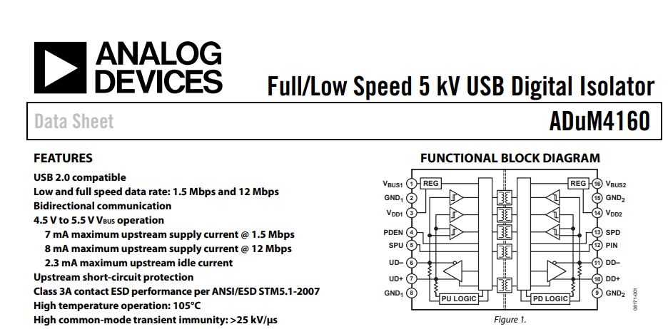 Вложение 52615 Ну даташит смело утверждает обратное:pleasantry: ( FEATURES USB 2.0 compatible) Кстати, у рекомендованной вами ISOUSB211 действительно есть режим high speed (480 Mbps), против 12 Mbps ADUM4160, но в случае нормального хаба остальные порты будут иметь свою полную скорость, что для обычного пользователя не имеет вообще никакой разницы. Кстати, тестировал как то ADUM4160 на скорость, передавая файл на гигабайты с последующим сравнением побайтово. Так вот абсолютно идентичные файлы при полной заявленной скорости. Исходя из этого, расскажите мне пожалуйста, как юсб цифровой сигнал режет звук. Что вошло, то и вышло, а преобразовать это уже задача микросхемы АЦП. Или это опять ваша личная точка зрения? Цитата: