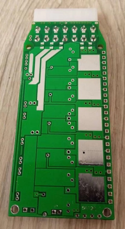 Следующий элемент блок-схемы -- аналог реле УРА-200, но с контроллером внутри собственной разработки. Управление включением/выключением по линии АСС, задержка отключения при пропадании АСС в 1 мин.43 сек., отслеживание напряжения на силовой линии и моментальное отключение при напряжении 11,82V. Катушки подобных реле в процессе работы достаточно сильно нагреваются и поэтому я сделал принудительный обдув. Вентилятор начинает работать, когда реле замкнуто.