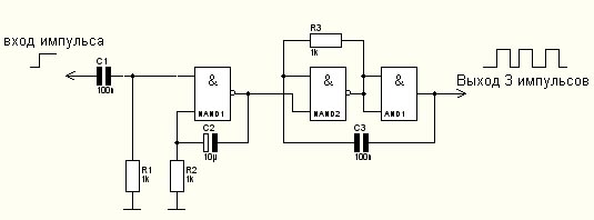 Чтобы с фронта входящего импулься сделать короткий (RC-цепь)