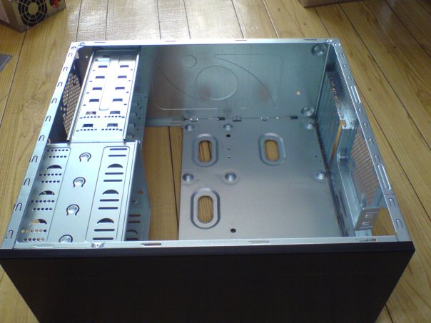 Порывшись на работе, для системы были найдены следующие железяки: мама - DFI 945G-TMGF проц - Intel Pentium D 3.4 Ггц Озу - PQI на 1 гиг Докуплено: Видео - NVidia 8400 GS Винт - Seagate на 160 гигов Звуковуха - PCI Express® Sound Blaster® X-Fi™ Xtreme Audio. Начал с корпуса. В закромах был найден простенький китайский корпус. Вложение 6294 ... он был безжалостно распилен. Вот, что получилось. Вложение 6295 Вложение 6296 |