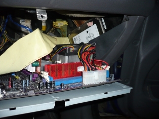 Первый вариант был собран на скорую руку ну потому что уж очень хотелось... Еще тогда родилась мысль разместить все это дело в салоне. Не хватало только сформировавшейся идеи и решимости. И вот, отработав 2 с лишним месяца у моего карпутера накрылась ОС. Так, как для восстановления пришлось снимать и нести домой системник, я наконецто решился все переделать. сразу скажу все что получилось меня до конца не устраивает и постепенно будет совершенствоваться.(о чем буду отчитываться по мере завершения.) пока же выкладываю то что уже сделано. 1.Место установки системной платы было выбрано в бардачке. Точнее вместо бардачка. он уже давно стал оправдывать свое название, ибо складывалось там все что сразу недосуг было выбросить или уложить куда нибудь еще. а так нет места - нет проблемы. Вложение 8350] 2. Жестяк расположился над центральной трубкой вентиляции салона. зимой я ею практически не пользусь ( нет необходимости. и так жарко). А диск там помещается так что с места ему уже не сдвинуться. 3. Блок питания (обычный. временно используется схема с инвертором) удалось запихнуть только под переднее пассажирское сидение. Ближе к мамке места не нашлось, так что пришлось удлинять провода ( толстая черная "сопля" на след. фото). Нудная хочу вам сказать работа. Вложение 8321Вложение 8351 4. Все, что есть, пока расставлено по своим местам ( над СП нашлось немного места для GPRS-модема). еще раз все проверяю - работает! Остается только собрать провода и поставить элемены декора на место. И промежуточный результат моего труда. Вложение 8335Вложение 8336 "Художественный" беспорядок в салоне со временем начал порядком раздражать. Наконец организм перестал выдерживать этот хаос и я занялся наведением порядка. (как и обещал). Для начала, раз уж все равно пришлось все разбирать, переместил хард с трубы отопления в нишу справа от бардачка. Сколько тут все таки интересных и сободных мест, если поискать. Его же (харда) место занял GPRS-модем. Вложение 8322Вложение 8323 БП был сдвинут в правую половину пассажирского кресла, что позволило пустить провода под ковриком и накладками порога. ( как сразу не догадался?:be:) Провода же от монитора спрятал за ним самим, пожертвовав целостностью системы вентиляции салона. И вот результат. По-моему стало чище:pleasantry: Вложение 8339 Ну и пара новых приобретений: Карт-ридер встал вместо пепельницы. Осталось только накладку какую нибудь декоративную для него сврганить. Взял внутренний, так, как на "мамке" остался незадействованым один разъем для усби. ну не пропадать же ему всамом деле. До кучи был приобретен трекбол. Общаться с его помощью с карпутером стало намного удобнее чем с джойстиком на клавиатуре. Взял проводной потому, что приемник от беспроводного куда лепить я уже и не знаю. А так он намертво удобно встал под рукой а ужпроводок от него я куда нибудь спрячу. Кстати последние фото загружал находясь в движении с его помощью. Весьма...:derisive: Вложение 8324Вложение 8325 |