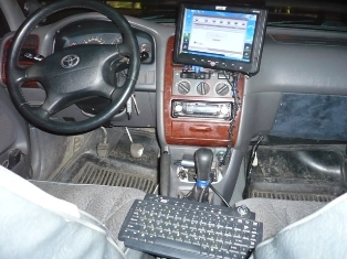 ЦП AMD Athlon 64, 1.8 MHz 3000+,Системная плата ECS RX480-A, RAM 512 Мб, HDD 80Гб, Монитор Mystery MTV-920 9', GPRS-модем от Beeline, GPS-приемник One-XT, Навигация City Guide 2.2 и RussaWin