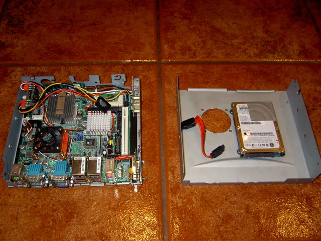 Но, не потому, что заглох процесс постройки компа в MDX, нет. Просто я достаточно ленивый в написании большого количества букв человек. Разбирал фотки на компе и наткнулся на тот небольшой децл фоток, что делал при установке. Так что взял себя в руки и решил натыкать пару-тройку килобайт на клавиатуре :) Как я написал в первом посте темы, планировал сделать инсталл в стиле многоуважаемого Slden'a - т.е. берем его контроллер и оставляем родной монитор. Однако, душа карписишника не смогла смириться с разрешением штатного моника, да и интегрированое видео на 965 чипсете не смог заставить выдавать картинку, поэтому было принято решение выкидывать родной моник нафиг. Восьмерка формата 3:4 выглядела бы слишком громоздко, поэтому решил запихнуть формат 16:9, тем более он как нельзя лучше подходил по размерам - практически такой же как и штатный. Снимаем родной моник, разбираем корпус, вытряхиваем из него всю начинку и запихиваем внутрь новый моник. Вложение 11592 Вложение 11596 Вложение 11597 Вложение 11598 Вложение 11589 Вложение 11599 На фото видна плата клавиатуры монитора, на самом деле она не понадобилась. Взял фотодиод (или как он там называется) с клавиатуры и разместил за черной пластиковой передней панелью - она покрашена, но инфракрасный пропускает, поэтому для регулировки параметров монитора использую пульт. Несмотря на ликвидацию штатного моника, остальные штатные мультимедиа компоненты (магнитола, навигационный комп, потолочный монитор) решено было оставить и интегрировать комп со всем этим барахлом. Причин тому несколько - во-первых, не хотелось ставить усилок (знаю я эту болезнь, как тока поставишь, сразу захочется поменять родную уккустику, опять ваять саб, и т.д... :) ). Во-вторых, штатная камера заднего вида питается от навигационного компа, напряжение питания 8 вольт - пришлось бы делать преобразователь. В-третьих, навигационный комп окромя бесполезной нави по штатам обладает системой диагностики авто, терять ее не хотелось. В-четвертых, всяческие навороты типа TPMS, изменение громкости в зависимости от скорости, блютуз уже есть в штатной навигашке и перекладывать на CarPC функцию их замены смысла нет. Родная навигашка не имеет естесственно VGA выхода - только RGB, поэтому для того, чтобы видеть, что там вещает навигационный комп был куплен за смешную сумму (450ре) преобразователь RGB -> CVBS. Вложение 11601 Соответственно, новый моник работает в 3 режимах: CarPC, Video2 - камера заднего хода (с автоматическим переключением от сигнала REVERSE) и Video1 - собственно родная навигашка (переключение в режим ручками, с пульта). Картинка после преобразования конечно не пиксель в пиксель, но достаточно для того, чтобы смотреть на нее без тошноты. MDX машина большая, места внутри дохрена, но это не повод забивать свободное место громадным компом на плате ATX формата. Да и не люблю я всякую хрень, кушающую по 200 ватт... Автомобильный комп должен быть быстрым и мало жрать, иначе это уже не автомобильный комп. В итоге моя конфигурация построена на Mini-ITX с мобильным Core2Duo и жрет в пике 45 Ватт вместе с монитором :) Для корпуса выбрал старый DVD корпус от покемонской балалайки, оставшейся от моего праворульного детства. Не хочу хвастаться, но по-моему это самый маленький корпус для платы формата Mini-ITX - размеры 200х180х45 :) Вложение 11594 Вложение 11590 Вложение 11595 Вложение 11588 Как не странно, но ставить дополнитель
