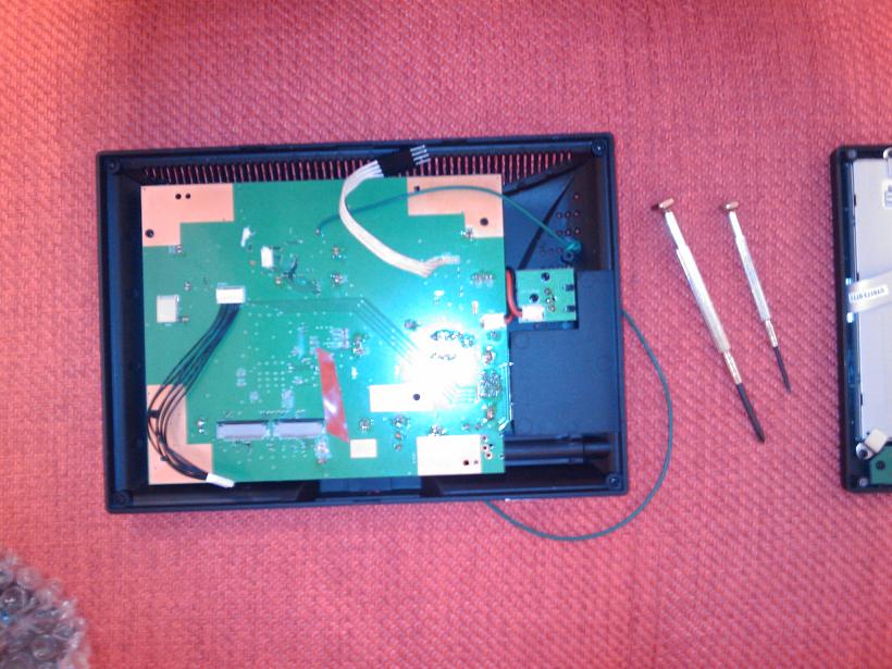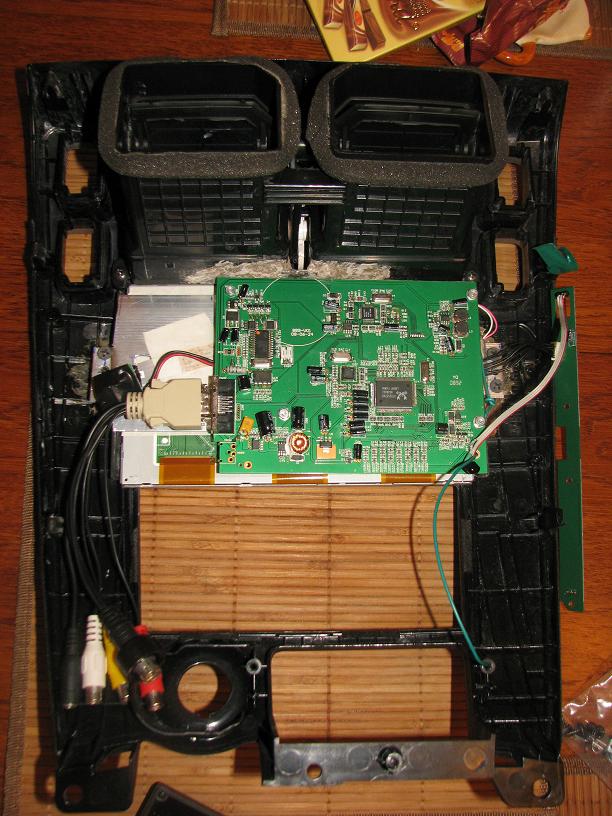 1) Комп должен быть настолько мощным, чтобы ребёнок на заднем сидении мог играть в игры на втором мониторе или смотреть мультики, пока я сморю на навигашку на основном, которая не тормозит из-за недостатка производительности компа :) 2) Возможность использования жидкостного охлаждения CarPC 3) Создание CarPC при уже существующей аудиоподготовке авто и камеры ЗВ, соответственно грамотное подключение компа ко всему что уже есть. 4) Разнесение компонентов CarPC внутри панели авто для того, чтобы даже если пионеры залезут им было неинтересно тырить "непонятные платы"(имеется печальный опыт воровства магнитолы без панельки!) Как и у многих был куплен монитор Lilliput 889GL-NP/C/T, как наиболее удовлетворяющий характеристикам монитора в авто, однако я погорячился с 8-ми дюймами, 7-ку было бы встроить куда легче, но я упрямый, так что вот что получилось: Разбираем монитор: Аккуратно отсоединяем половинки и видим матрицу с кнопками управления: Вложение 10844 А вот и плата контроллера: Вложение 10845 Когда оформлял замену консоли по страховке после воровства магнитолы, остались царапины - попросил в страховой вернуть старую запчасть - вернули, оказалось царапин на ней нет - это просто было испачкано чем-то, в итоге имеем вторую центральную консоль, которую не жалко испортить. Вот она, та часть что не участвует в эксперименте заклеена малярным скотчем: Вложение 10846 Далее идём стандартным путём, резка, "волосатая" шпатлёвка, финишная шпатлёвка, шкурка, грунтовка, покраска. Но не всё так оказалось просто, т.к. габариты матрицы выходят за свободное место в консоли по вертикали - пришлось сильно изрезать корпус монитора, оставив лишь небольшую часть передней рамки, все остальные крепления матрицы, платы и панели кнопок управления пришлось делать заново. Эх, чего ж я не взял 7 дюймов... :) Консоль с отрезанной рамкой монитора, прихваченной паяльником: Вложение 10847 Вложение 10848 Далее "волосатой" шпатлёвкой придаём примерную форму и заполняем ненужные пустоты: Вложение 10849 Потом шкурим и наносим финишную шпатлёвку: Вложение 10850 Далее мокрая шкурка и получаем предварительный вариант: Вложение 10851 Для большинства, кто встраивал мониторы - это была самая сложная часть работы, у меня это было так сказать только полпути, ведь вертикальные крепления для матрицы отрезаны, да и плата по высоте больше, чем матрица, надо либо располагать её перпендикулярно матрице, что проблематично из-за короткого шлейфа, либо под углом - опять лишний раз поругал себя, за то что связался с 8-ми дюймами. Но, внимательно приглядевшись к плате контроллера стало понятно, что как раз те 10 мм, что мешают поставить плату как положено, т.е. позади матрицы параллельно ей, не несут на себе значимых дорожек или радиодеталей. Решено было рискнуть и отрезать нафиг кусок ненужного текстолита, что и было сделано методом процарапывания пилкой канавки по металлической линейке и последующим отламыванием. Потом края подравнял надфилем. Панель кнопок управления монитором уже нигде не помещалась кроме как на воздуховодах, выносить кнопки я не собирался, вынес только ИК приёмник для пульта ДУ, удлинив его кусочком шлейфа IDE. Видимая часть матрицы располагалась великолепно, но вот невидимая только если подрезать воздуховоды(буквально на толщину пластмассы, но по-другому никак не влезала матрица, пришлось подрезать), как назл