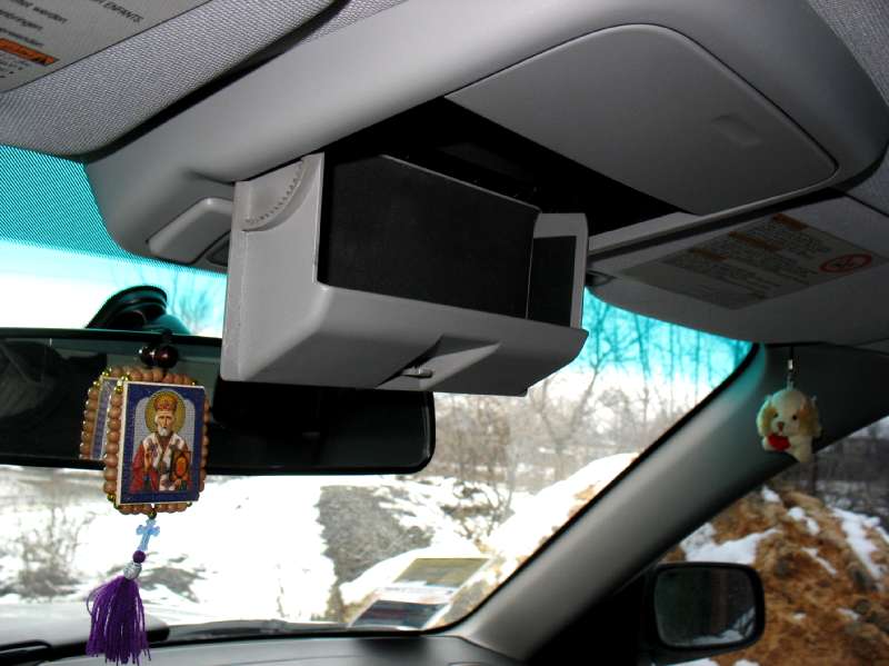 Собираюсь инсталировать CarPC, есть идея встроить 8" моник в перед в торпеду вместо бордачка будет неподвижным, а 7" в очёчник. Выезд и въезд моника как сделать уже идея есть, а вот чтоб крышка за ним закрылась ни как не додумаю, микро движки использовать планирую от электро зеркал, на рынке их много и они на 12Вольт, направляющие от мебели (шариковые) они самые компактные. Принцып выезда монитора взят у городского автобуса (как дверь закрывается одностворчятая). А вот крышку за монитором закрывать незнаю как сделать, хотелось бы простой вариант придумать, использовать тотже движок или систему рычагов может какую. Есть идеи поделитесь. Толщина корпуса монитора 2см, если отделить матрйцу от платы управления то корпус получится толщиной 1см и оставить второй отсек для очков. Корпус планирую из нержавейки 1мм, механизм редукторный (2 шестерни). Вот фото куда планируется инсталировать 7" монитор. поширине встает как раз, а по длине монитор выезжать за край крышки в низ порядка 1-1.5 см. должен, второй отсек планирую заглушить.