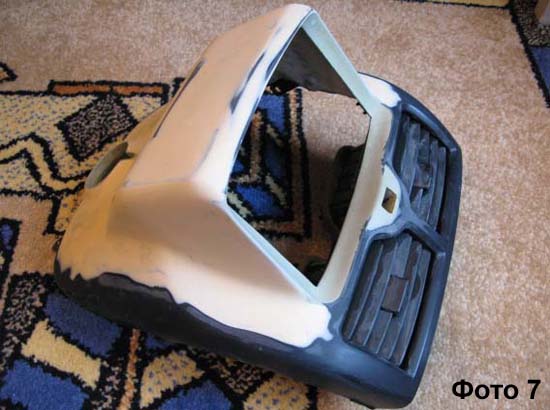 Фото 7: Потом все покрыл шпаклевкой для пластика и упорно шкурил опять до полного удовлетворения результатом (на заднем фоне подиум для GPS).
