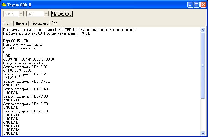 2 - вкладка где должны читаться значения PID, после нажатия Start