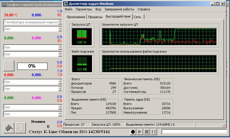 в режиме графика. даж сконектилось разок. но как только перестал ловить данные., загрузка подскочила под 100% запросы больше не идут. на кнопку с рукой среагировал, тоесть сменился на флажек но так и пишет что идет обмен, доп поток висит, 100% загрузка. и пропала только когда вышел из программы.