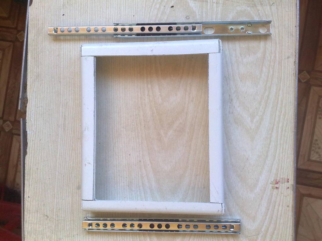 Из воздуховода вырезаны элементы корпуса, скреплены клепками и проклены клеем. Также приобрел выдвижные полозья.