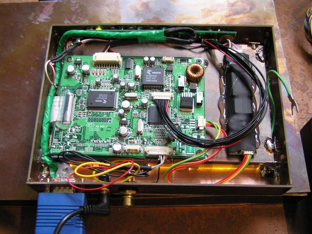 В качестве питания ноута сначала был приобретен БП Bandridge BE5000, но при установке в машину он показал себя не с лучшей стороны - давал сильные наводки. После был успешно заменен на FORTRON FSP-CAR120. Немного шумов осталось, но они идут от генератора и монитора (кабель на магнитолу идет как раз за ним). С этитми шумами бороться легче, но и то их практически не слышно.