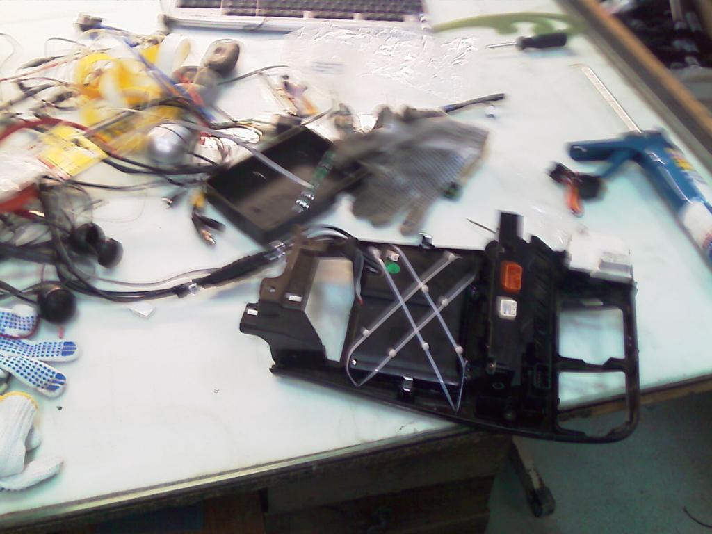 Спасибо хорошему знакомому за предоставленный теплый бокс.Совместил приятное с полезным и решил поставить новую сигналку. Начали с разборки панели и демонтажа старой сигнализации. попутно друг закреплял монитор. Так как крепление которое я сделал малость не подошло пришлось прибегнуть к применению стяжек.В итоге получилось вот такое чудо, которое мы успешно установили в панель и оно влезло туда как там и было, что нас сильно удивило)