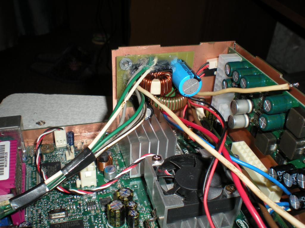 Начал мудрить , и думать как все туда воткнуть и сделать экранировку, уж очень хотелось ее оставить,в итоги получилось что корпус тока с одной стороны надо спилить и он отлично влез под рулевую колонку при размере 180х180х80! в него все влезло что нужно для пк.