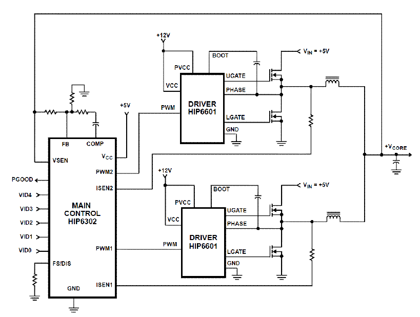 Вот смотрите, по моему идеально, и синхровыпрямители, и 2 фазы... http://datasheet.su/datasheet/Intersil/HIP6302CB-T