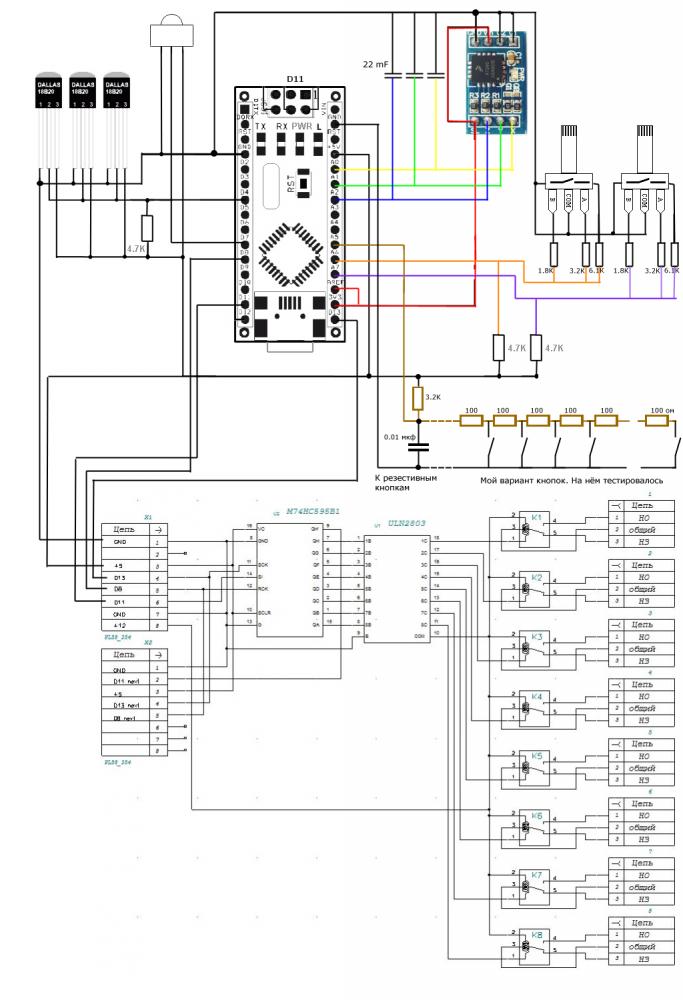 Если вы в состоянии загрузить в arduino другой код, то можете ещё использовать температурные датчики DS18B20, акселерометр, два энкодера и до четырёх блоков реле