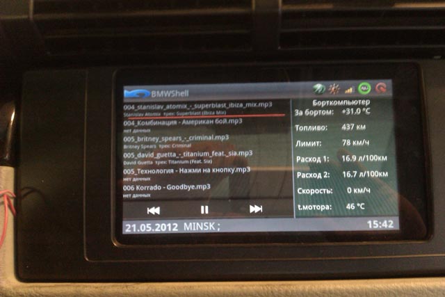 Приветствую всех! Хочу поделиться первыми результатами инсталляции планшета на андроиде 2.2 Связь с авто через k-bus переходником на pl2303(Спасибо S.M.). Джойстик сделан на основе оригинального. В него встроена обычная мышь и подсоеденены хардные кнопки планша. Веб камера на основе logitech c210 работает превосходно. Выведен USB вход со своим питанием в бордачок(можно использовать, как зарядку). Запитано все от самодельного преобразователя на 3А. Не перегружается при заводке даже с подсаженым аккумом(AGM). Зажигаю/тушу релюшкой на power на 1-е положение ключа зажигания. Потребляемый ток в спящем-ок. 180 мА.Осталось решить 2 вопроса, может кто поможет. Если постоянно не читать с ttyUSB то он переполняется и перестает выдавать информацию. Однако писать в него все еще можно. Помогает только повторная инициализация. В реальной жизни это, например, если зависла программа во время движения - то надо остановиться, заглушить машину, передернуть USB, запустить программу. Вторая проблема-планшет не видит USB при загрузке с нуля. Т.е. все работает, если я вставлю OTG на уже загруженном планше. Может, есть какие мысли?