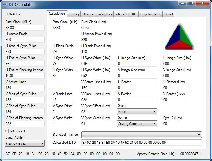 Попутно сообщу, что методом подбора удалось заставить работать родной монитор Acura MDX 2010-2012 в 800х480 с Intel GMA 3150, используя ТОЛЬКО DTDСalculator. Изображение вписано практически идеально, снизу пропадают несколько пикселей, но может это просто рамка закрывает. PS и прочие танцы с бубнами не понадобились.