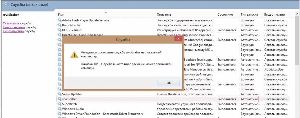 У меня не получается остановить, приостановить, перезапустить сервис ни bat файлами, ни в Службах. При попытке это сделать в сужбах выдает ошибку (вложение). На bat файлы вообще не реагирует.