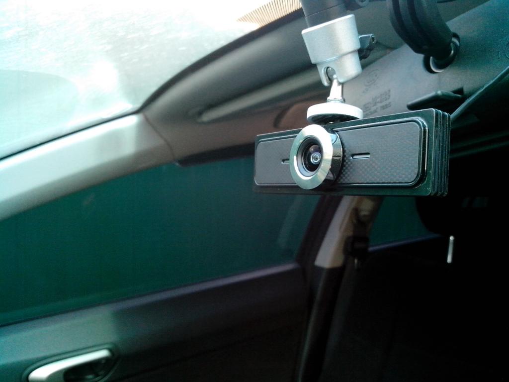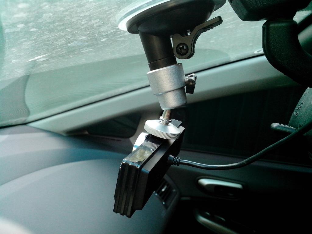 Крепление от старого регистратора прикрутил к камере. Задняя камера просто вставлена под обшивку потолка.