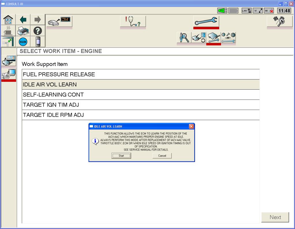Вот ради интереса выкладываю, как обучение ХХ делает Consult-III. В качестве эмуляции взял логи от Nissan Note 2005 (HR15DE) - электронный дроссель. В эмулятор ECU заложил лог от не завершающегося обучения ХХ.