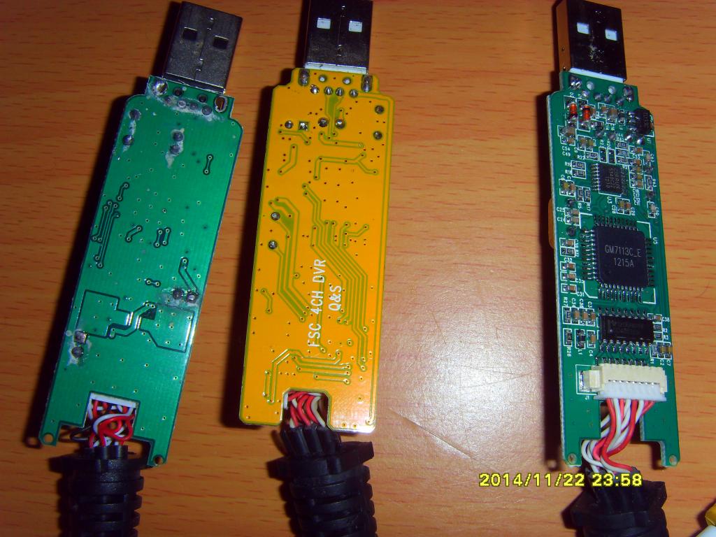 Уважаемые гуру .подскажите с таким вопросом: есть 3 похожих девайса.какой из них будет точно работать.оставить нужно 1 а 2 вернуть.как я понял тот что справа неподходит....остаются 2 . Желтый на stk 1160 и чип gm7113 . Крайний слева на utv 007 . По идее должен подходить на stk1160 лучше. А вот запустить картинку с камеры на компе смог только с utv 007. на планшете проверить сейчас нет возможности какой будет работать. Вот и прошу помощи и Вашего совета...