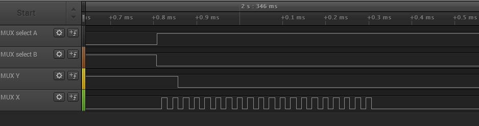 Первым делом разобрался с пинами мукса
