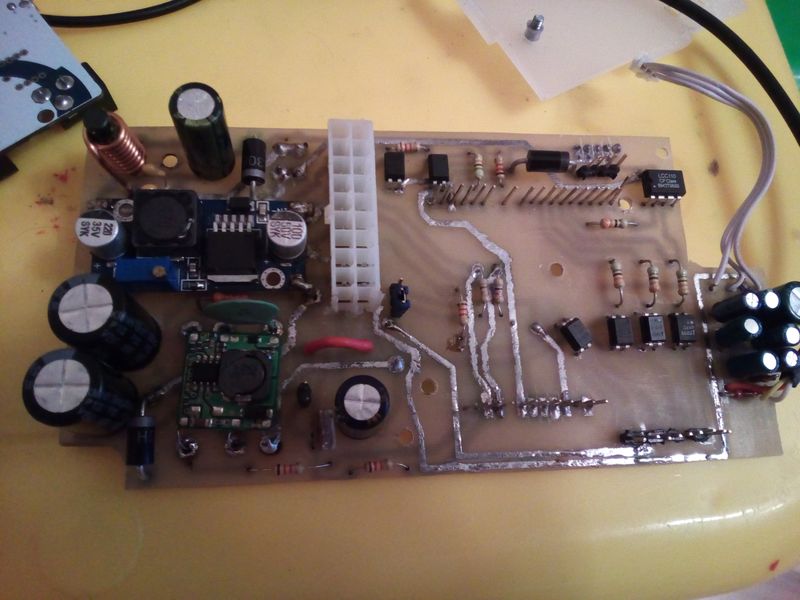 обратная сторона платы, тут цепляется разъем питания планшета (белый) и USB на него же (штырьки в правом нижнем углу)