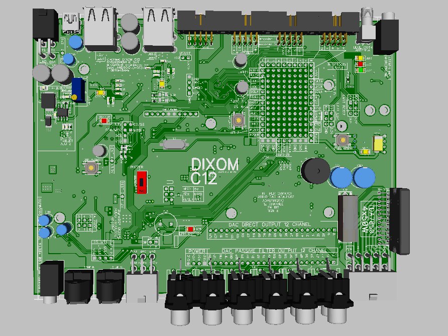 Всем привет! В финальной версии решил вывести на RCA разъёмы все 12 каналов, в тестовой версии не правильно нарисовал корпус RCA разъёмов и за этого их пришлось резать и разделять (видно на реальном фото что разъёмы RCA разрезаны. Оказалось что в реале спокойно помещаются все 12 каналов. Из этих 12 каналов 4 канала сидят параллельно с усилителем TDA7850 (отметил синим). Также в финальной версии аудиовыход будет на пассивном фильтре, но с гребёнкой для установки активного фильтра (это даёт большие возможности для улучшения звука в зависимости от бюджета, хорошие операционные усилители стоят довольно дорого до 1000руб за 1 шт, также существуют куча вариантов подключения операционных усилителей).