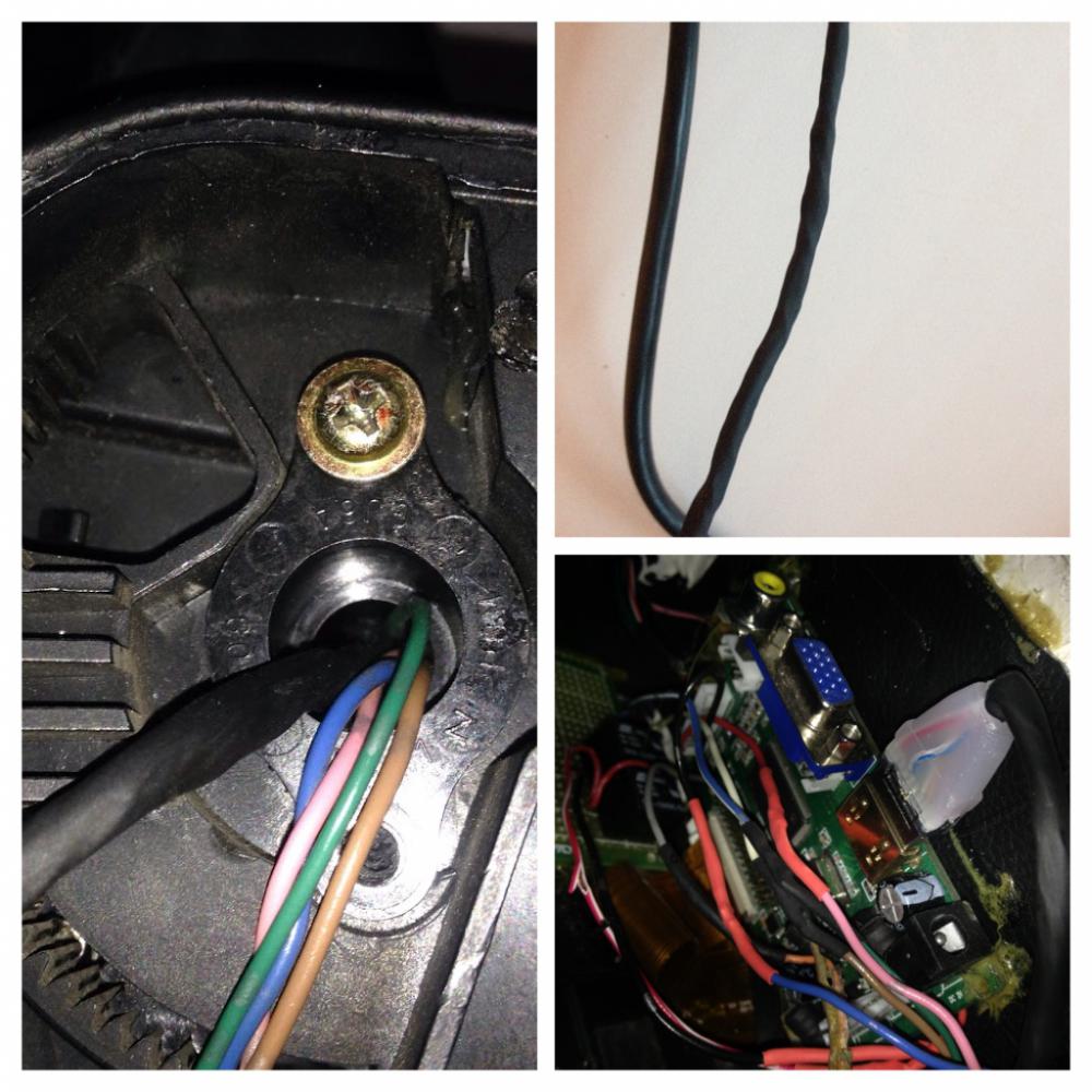 Далее, отрезал разобранную часть кабеля (иначе не пролазил штекер в монтажное отверстие монитора), установил в корпусе монитора, подключил к контроллеру.