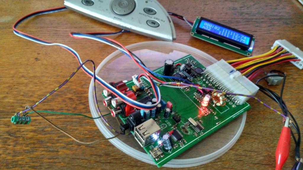 = БП5мини + юсб ХАБ + звуковая карта ( аналоговый, оптический и цифровой выходы) + звуковой процессор (для ааппаратной регулировки громкости) + встроенный изикап с передёргиванием питания.