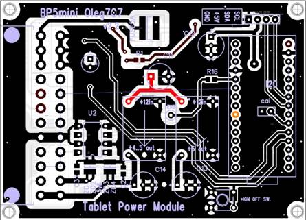 Далее, через паузу (определенную в программе процессора) после включения ACC включаем питание на батарею планшета