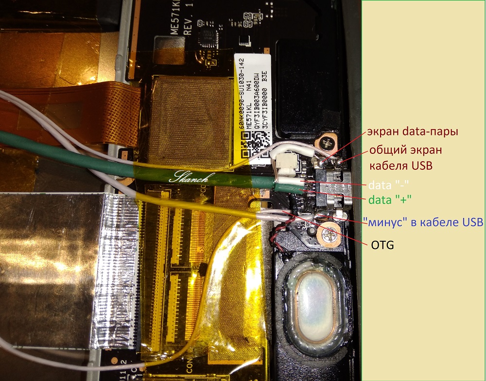 Ни в одном кабеле USB2.0 из магазина нет data--пары в собственном экране. Но для распайки внутри планшета -- это необходимое условие.