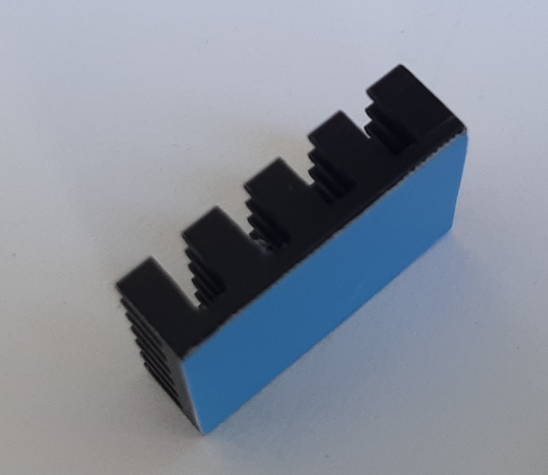 В термоусадке прорезано отверстие над достаточно горячим чипом и наклеен подходящий по размеру радиатор.