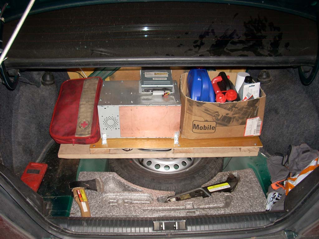 Выровнял часть пола в багажнике, ровно столько, сколько нужно для компа и ящика с барахлом которое живет в машине.
