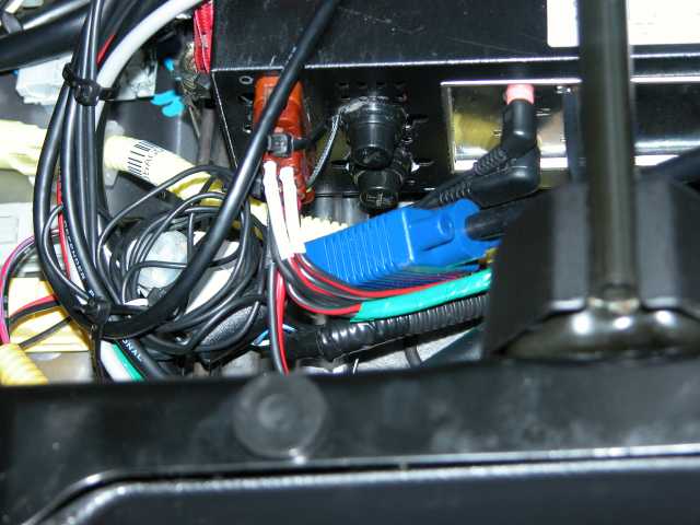 К принайтовленному системнику подключил разъемы всех кабелей. И получилось очень аккуратно. Кабели ушли под сиденьем под ковролин и к борту через порожек под торпедо. Остался запас по длине, чтобы можно было поднять кресло опять. Если заглянуть под сиденье не видно проводов вообще - только системный блок.