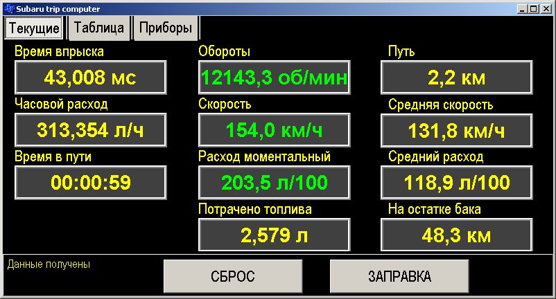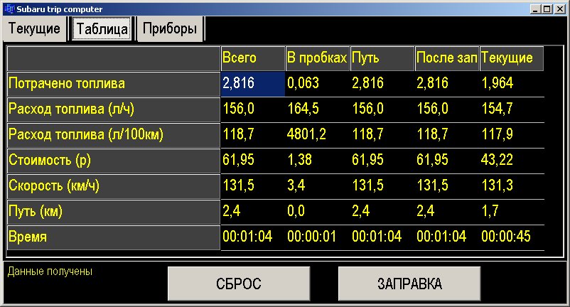 В Ожидании осциллографа для отладки Универсального адаптера расхода написал программку - маршрутный компьютер под субару. Работает через обычный K-Line по протоколу SSM2.
