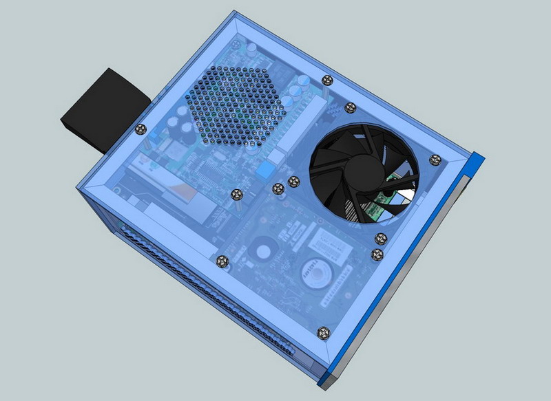 Таким образом, установка всего этого хозяйства планировалась в корпусе из оргстекла в штатное место 2-din магнитолы, однако из построенной в Google SketchUp модели видно, что Aver предательски высовывается из корпуса, что не позволит установить его туда.